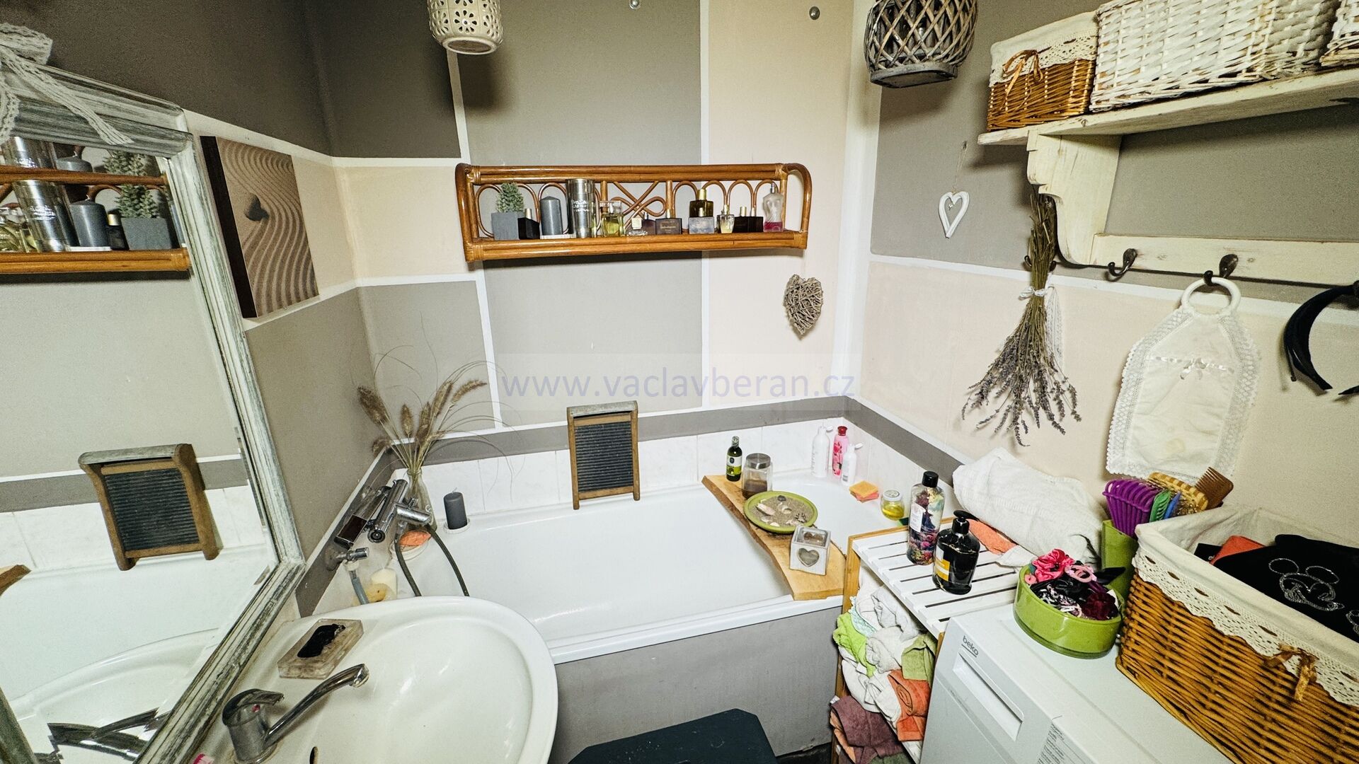 Na radiátorech jsou odpočtová měřidla, termostatické hlavice. Okna jsou plastová včetně žaluzií. Měsíční předpis plateb je 5065,- Kč/měsíc + elektrika. K bytu náleží sklep 4m2.