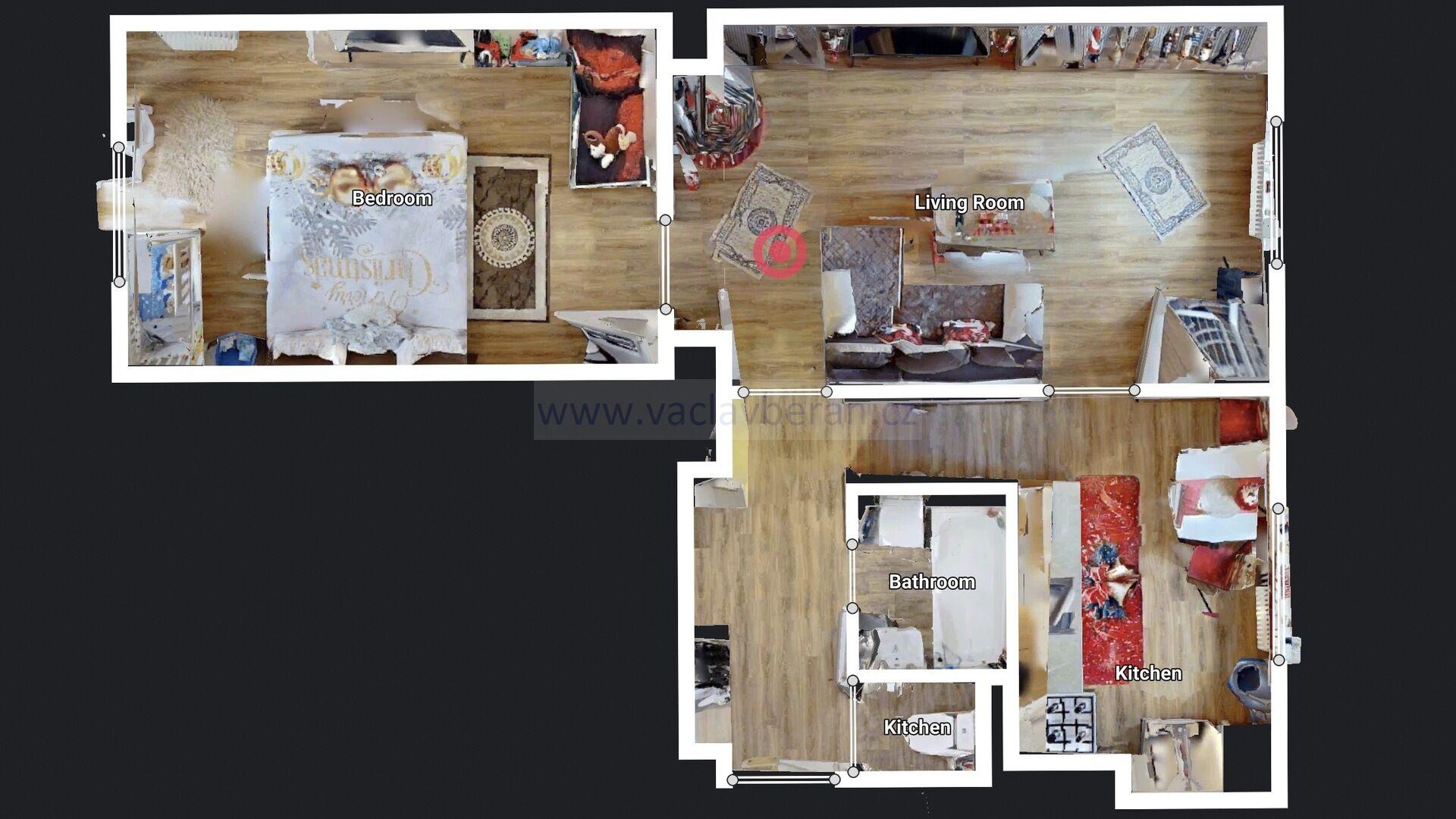 Podívejte se prosím na 3D sken nemovitosti, získáte tak detailní přehled ohledně nemovitosti, v modelu lze měřit a procházet nemovitost po jednotlivých bodech. Díky tomu máte lepší představu o prostoru.