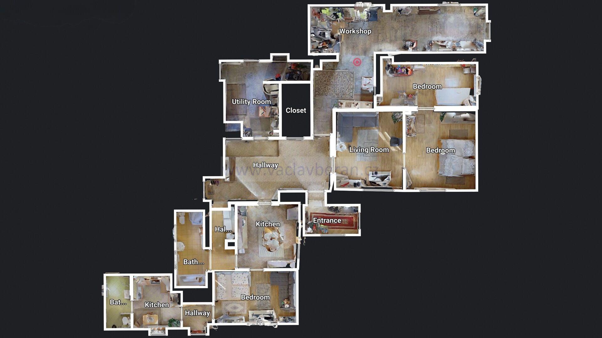 Podívejte se prosím na 3D sken nemovitosti, získáte tak detailní přehled ohledně nemovitosti, v modelu lze měřit a procházet nemovitost po jednotlivých bodech. Díky tomu máte lepší představu o prostoru.