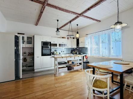 Nabízíme k prodeji rodinný dům s dispozicí 5+1 o zastavěné ploše 105m2, v České Třebové – Tylova 410. Dispozice přízemí: kuchyň s jídelnou, obývací pokoj s krbem, pokoj, koupelna, WC, spíž, technická místnost. 2.NP: 3x pokoj, WC. Zůstává kuchyň linka včetně: trouby, myčky, indukční varné desky, lednice ne, v obývacím pokoji zůstávají kamna.Dům je cihlový, okna plastová výměna v roce 2007, střecha kanadský šindel výměna 2023. Topení: plynový kotel Junkers, teplá voda plynovým bojlerem, rozvody topení v mědi, elektroinstalace v mědi, rozvody vody v plastu.
